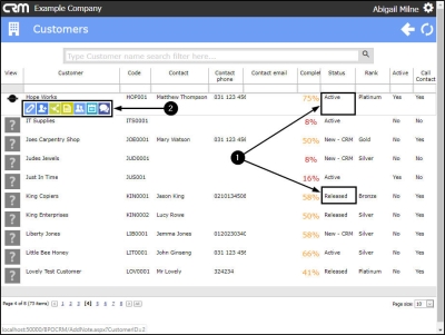 - If you selected a customer that is in status New - CRM then you will note an additional Action button: