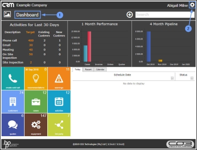 - The CRM logo to return to the Homepage.