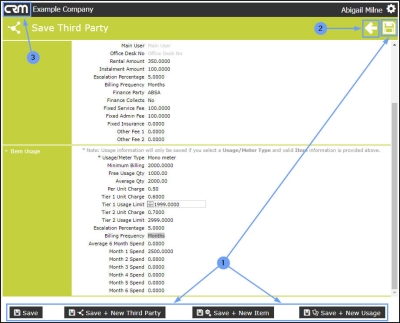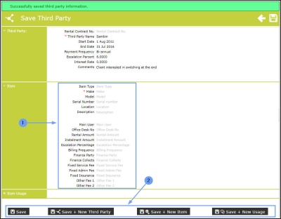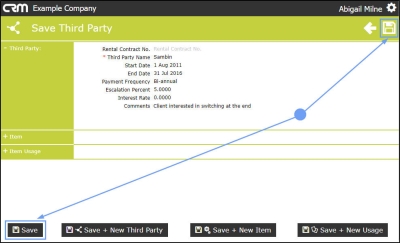 - The page will refresh but the Third Party details will remain in this page, ready for you to add a new item usage for this Third Party to the Item Usage section.