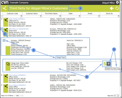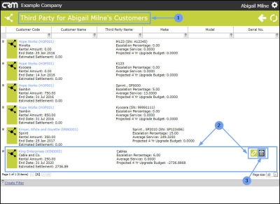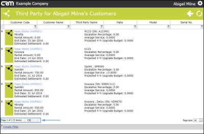 Here you can view a list of all the salesman's customers linked to third party contracts with a summary of each contract.