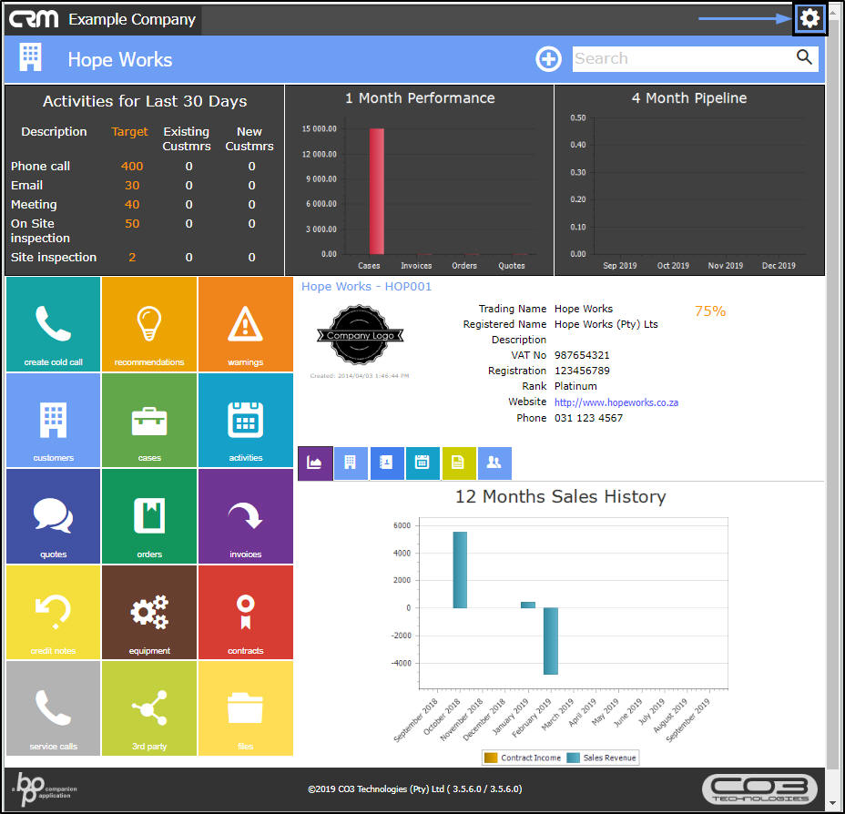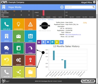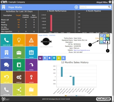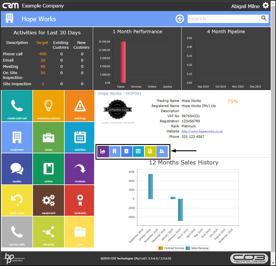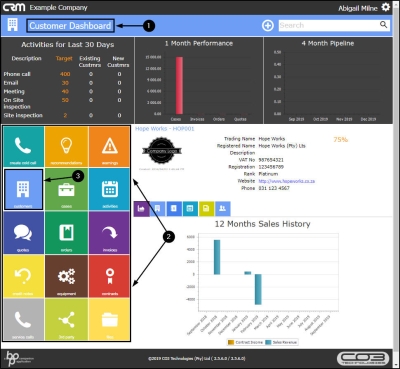 The Customer Dashboard is where you can view and access all of the selected customer details and information.