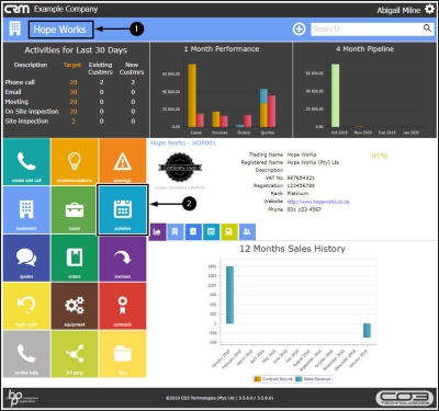 A full list of all customers activities can be accessed from the Dashboard (Home Page).