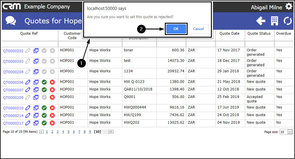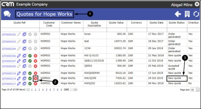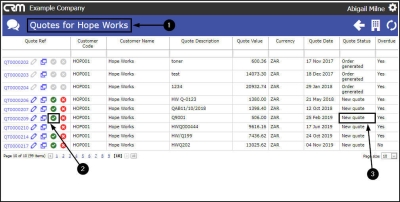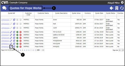 - In the Quotes for [selected customer] page,
