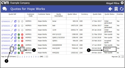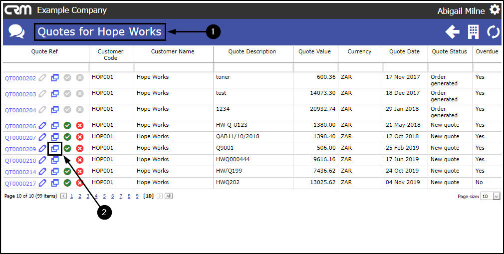 - Click on the Create Copy of Quote icon next to the Quote that is to be copied.