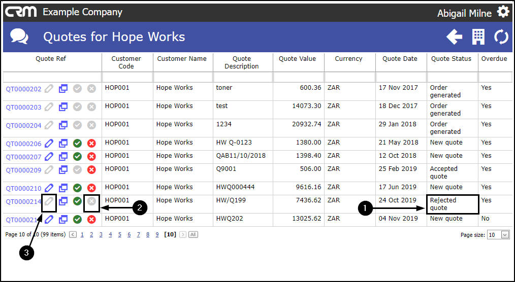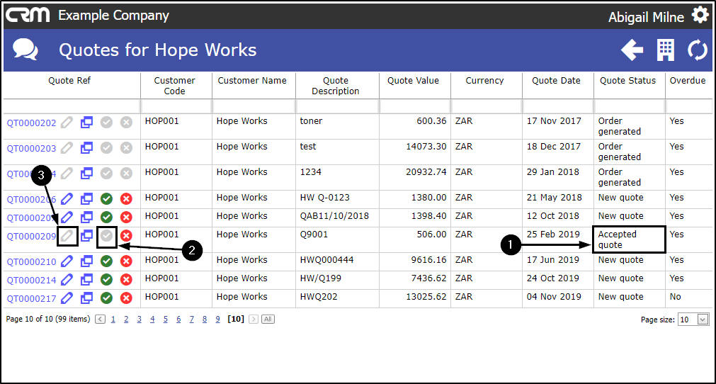 - Click on the Edit icon of the Quote that you wish to view.