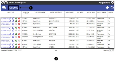 - All of the quotes linked to this customer will be displayed (even ones where you are not the Salesman).