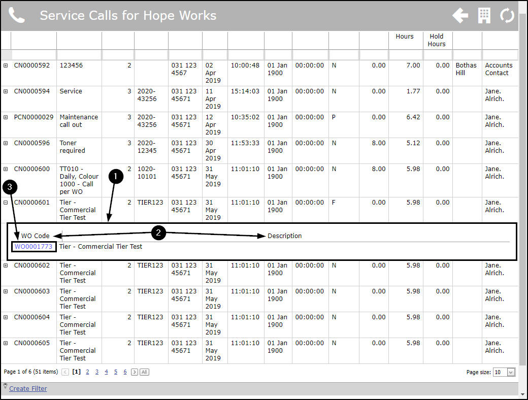 - Here you can view the WO Code and WO Description linked to the selected call.