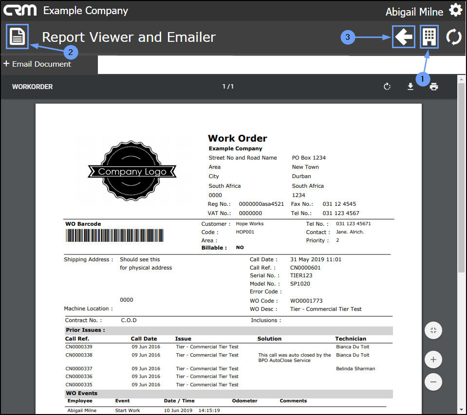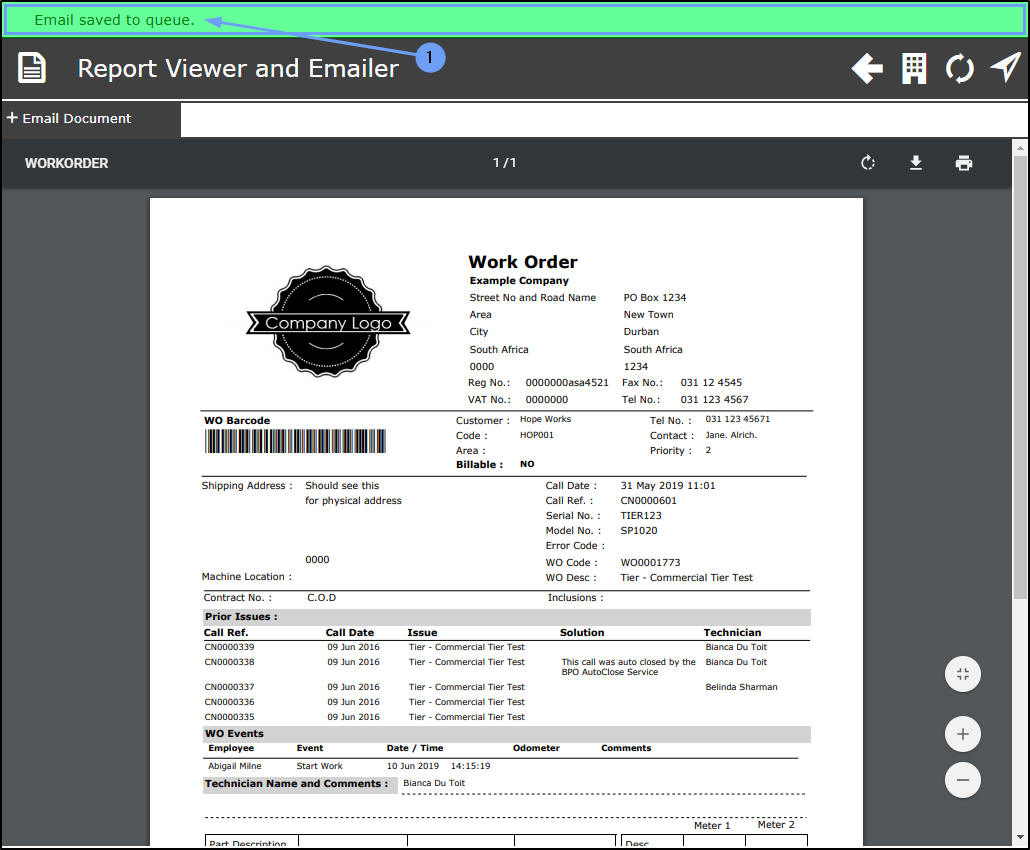 - Here you can view, download and/or print the Work Order report.