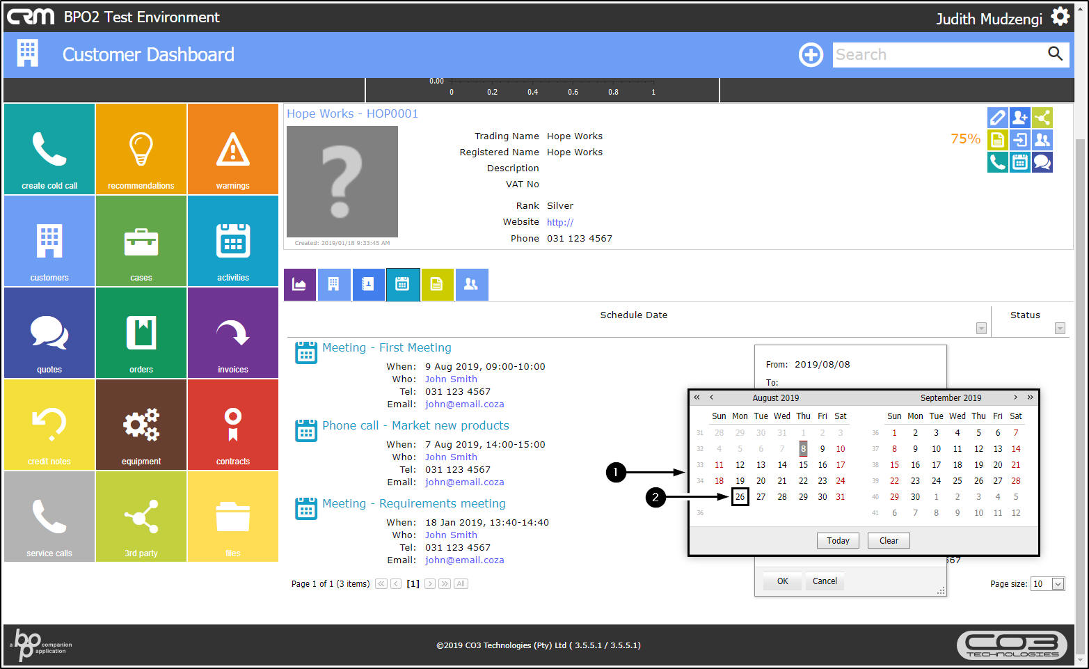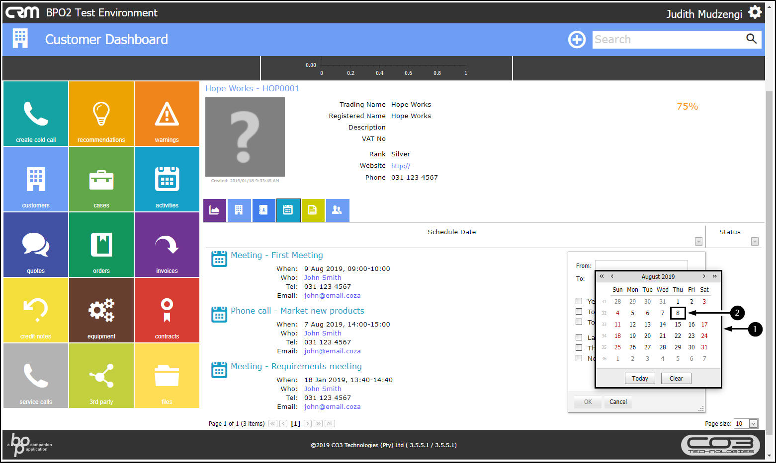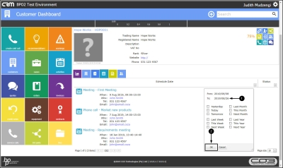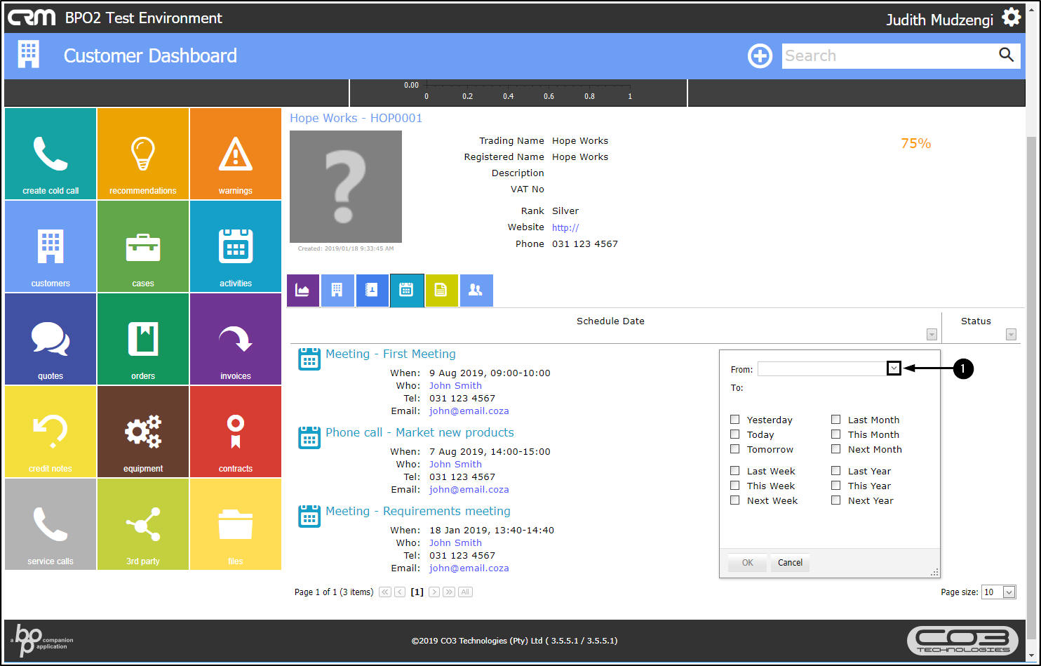 - The Today tab will be selected by default displaying customer activities due on that day.