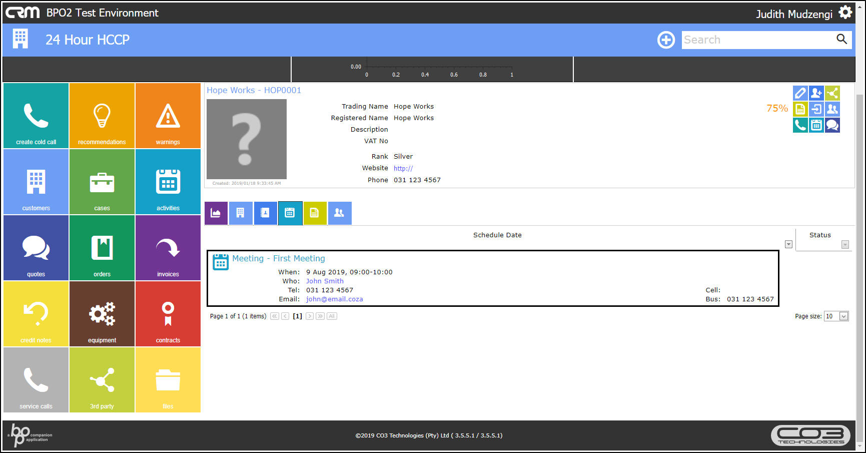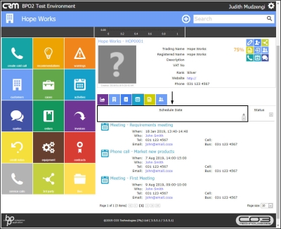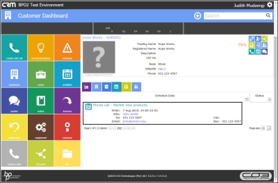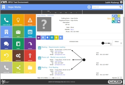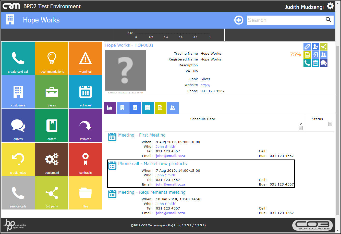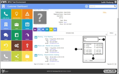 - The Today tab will be selected by default displaying customer activities due on that day.