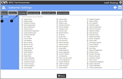 Salesmen Settings / Email Settings