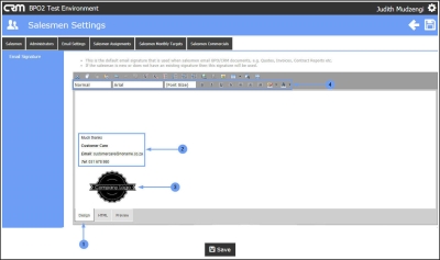 - Click on the Email Settings tab to edit the default email signature.