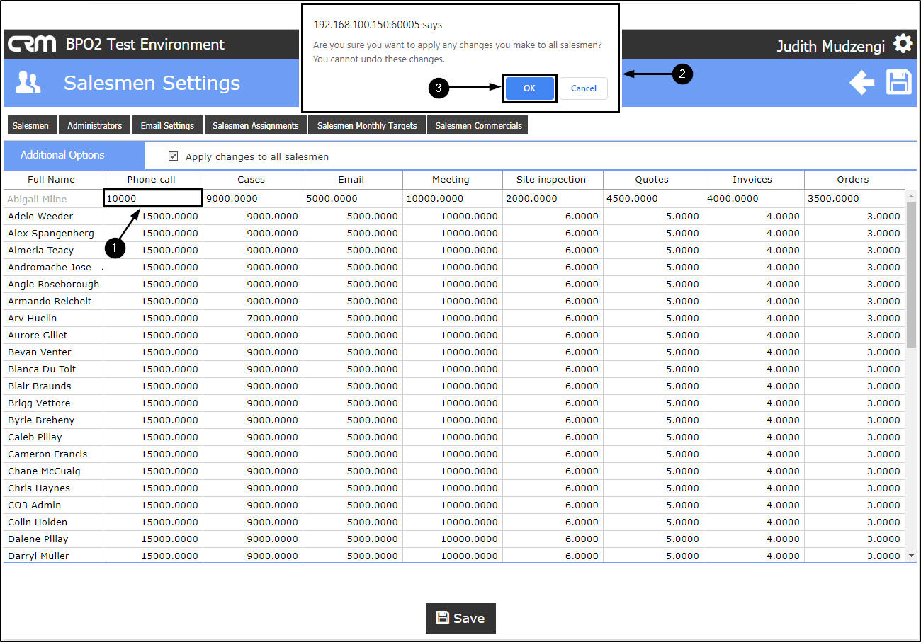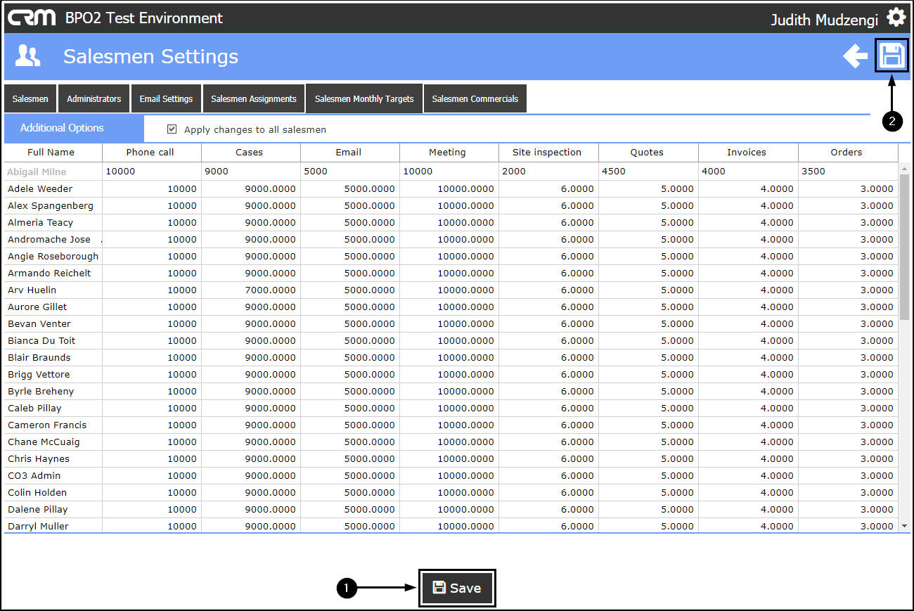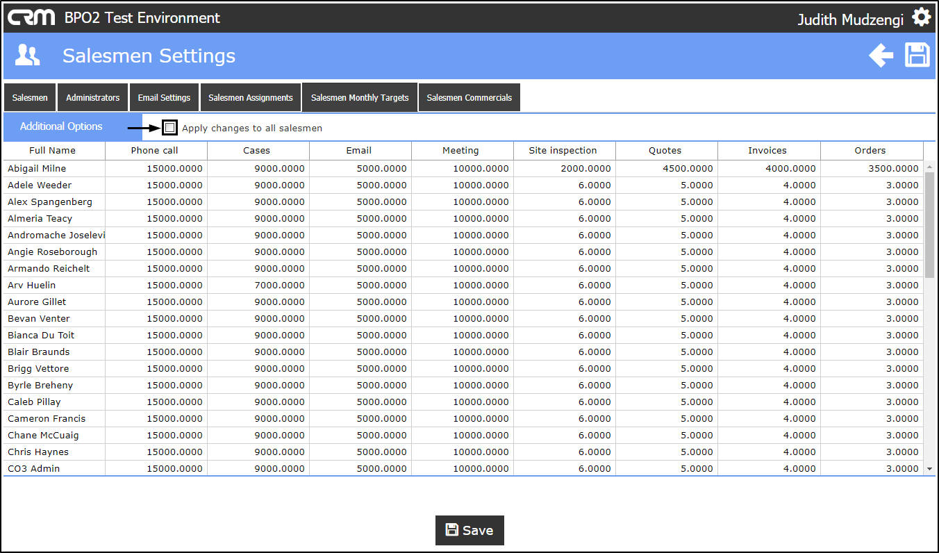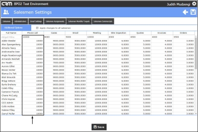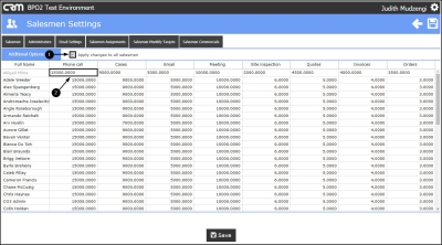 - If you want your changes to be applied across multiple salesmen, click on the Apply changes to all salesmen checkbox.