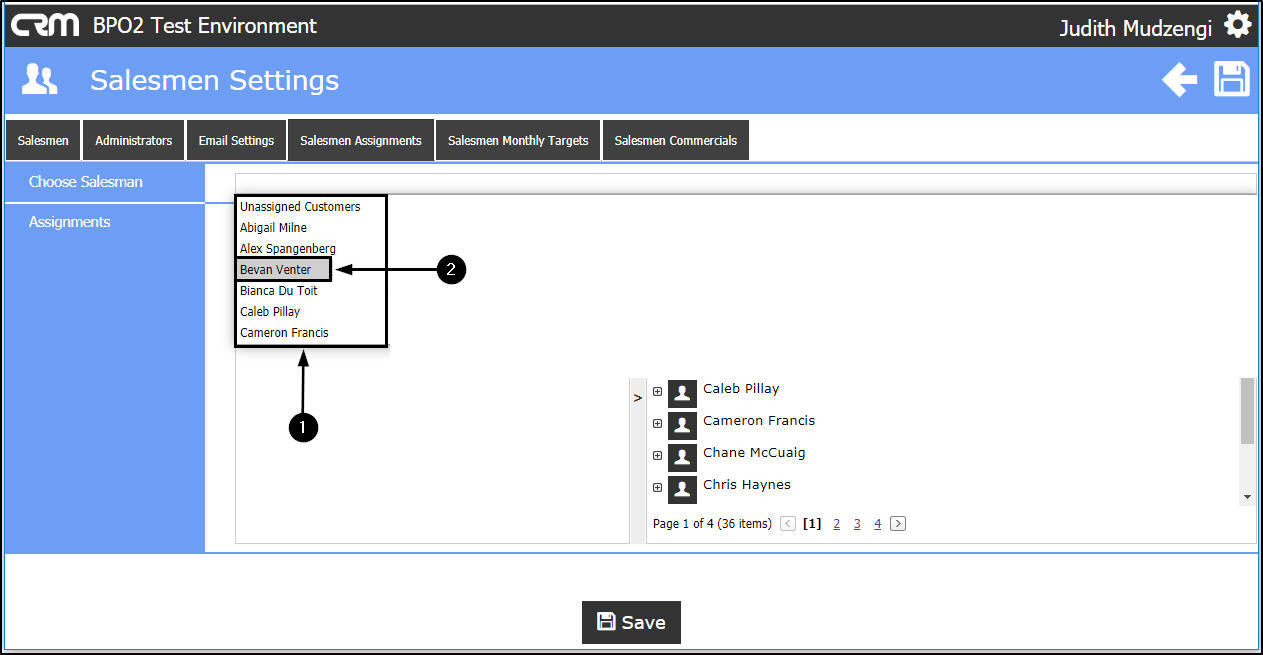 Salesmen Settings - Assignments