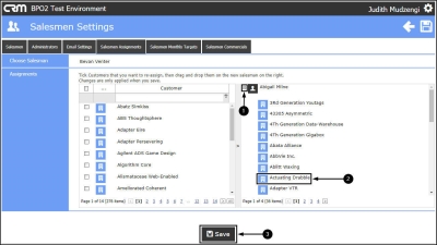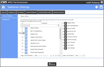 - Drag and drop the customer(s) to the relevant Salesman. When reassigning a customer, all related cases, reminders and recommendations for the salesman are reassigned to the new salesman.