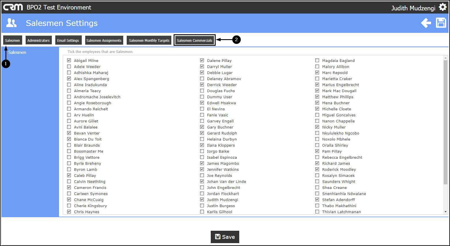 - The Salesmen Commercials option is for linking commercials created in BPO to salesmen in CRM.