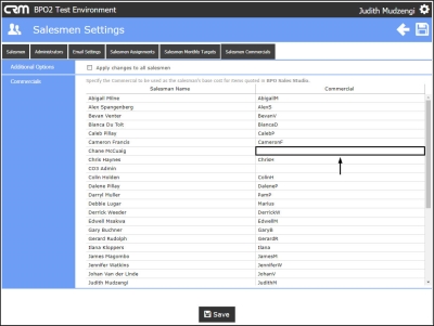 - Click on the Salesmen Commercials tab.