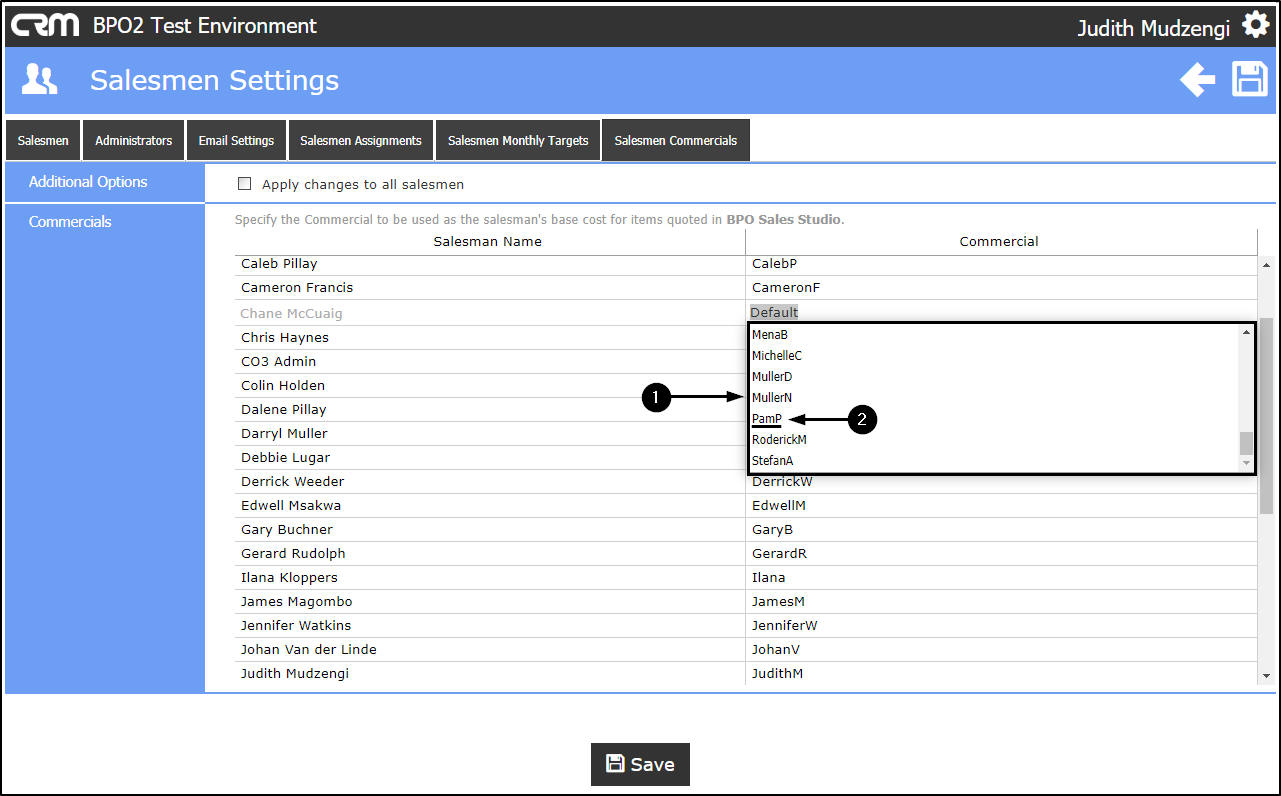 - Click on the Commercial textbox of the Salesman you wish to edit the commercial for.