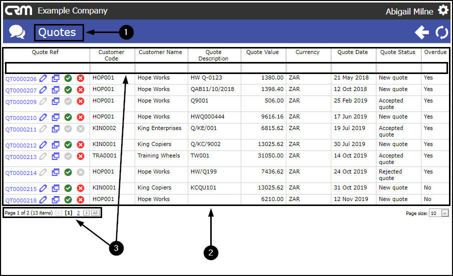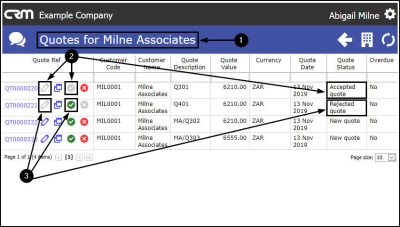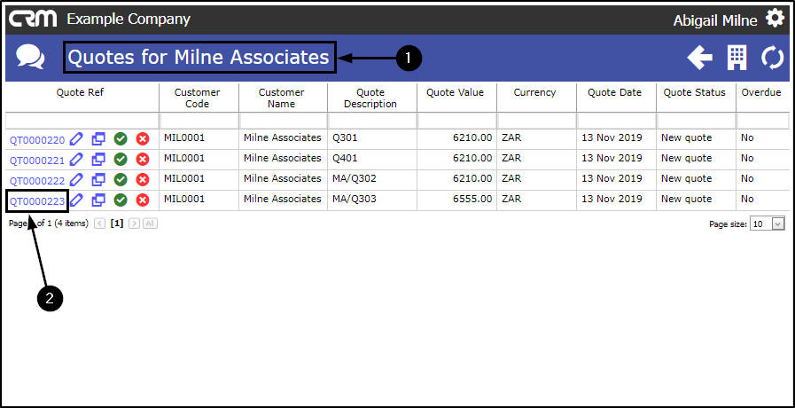 - In the Quotes for [selected customer] page,