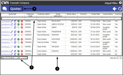 - All of the quotes linked to this customer will be displayed (even ones where you are not the Salesman).