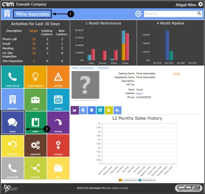 - Click on the CRM logo to return to the Dashboard (Home page).