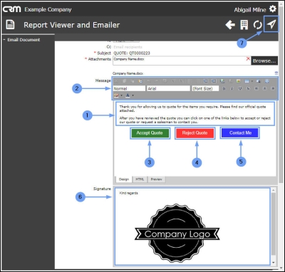 - Subject: This field will auto populate with the selected quote number but you can edit this, if required.