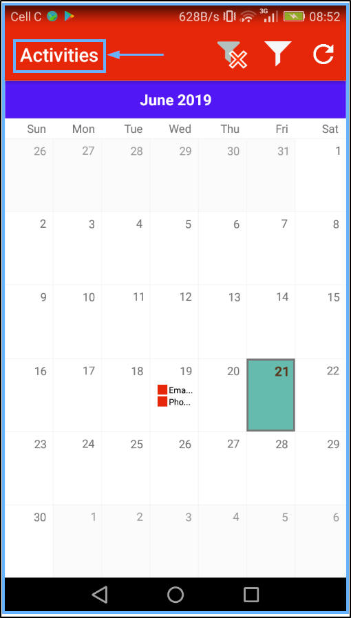 - The Activities screen will be displayed. This screen will be covered in more detail in Sales Connect: Environment.