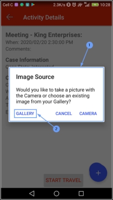 - Your image will be linked to the selected activity in CRM and you will return to the Activity Details screen.