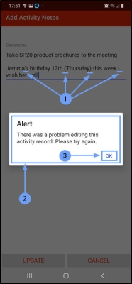 You can edit these Activity notes directly in CRM but for any changes to reflect in Sales Connect, you will need to go to the Activities screen in your device and tap on Refresh.