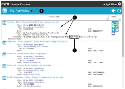 - e.g. "[Customer's name] birthday this week. Be sure to acknowledge this"