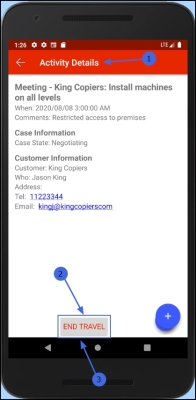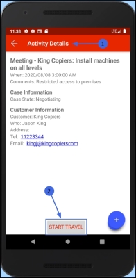 You can log Start and End Travel details to a Meeting Activity directly in Sales Connect. This functionality will record the odometer reading at the beginning and the end of the salesman's journey