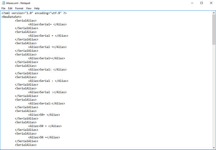 - An ‘Aliases’ xml file will enable a set of ‘allowed’ phrases for the system to pick up which text in the email is related to Serials, Locations or Contracts.