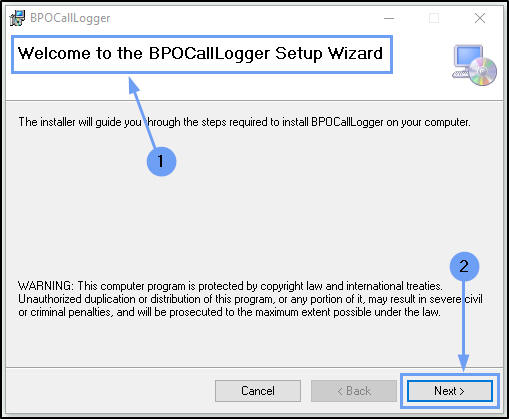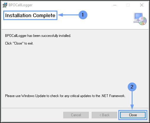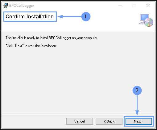 The BPOCallLogger installation will begin. Wait for it to be completed.