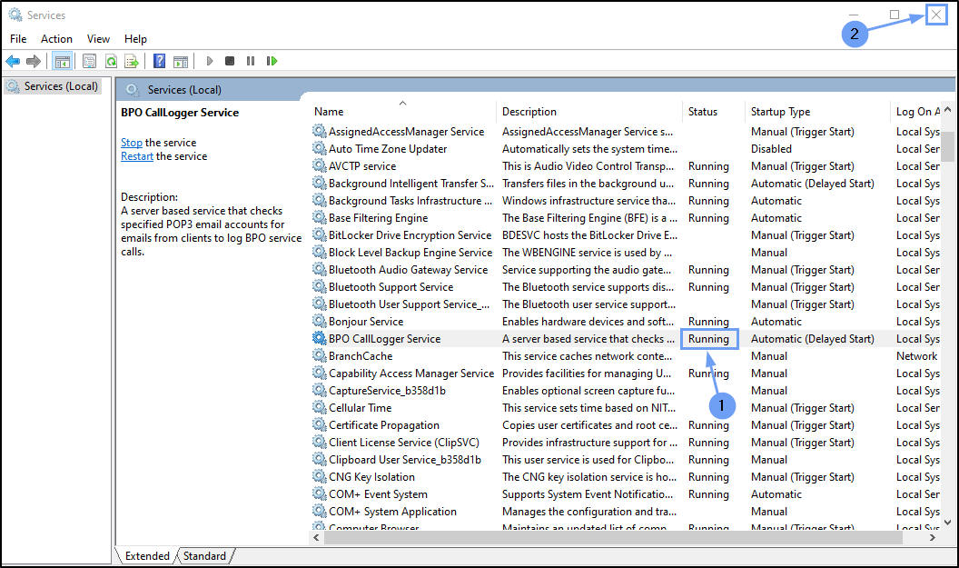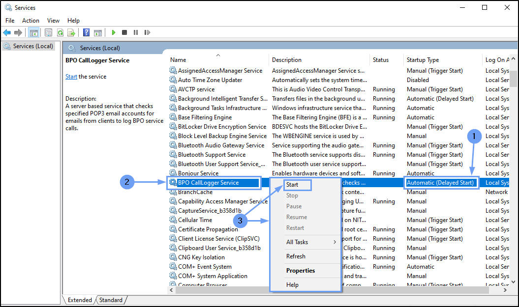 - BPO_CallLogger Service is a server based service that checks a specified email account for emails from clients and logs calls for emails where valid details exist
