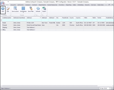 Ribbon Access:  Configurator   >   Company > Addresses