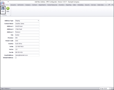 • Note: The default address should be the physical address of the company. As this new address is a shipping address, it will not be the default address