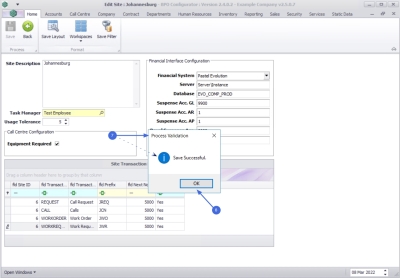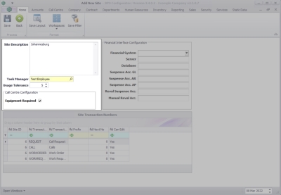 - Make the changes as required to the Site, Call Centre Configuration, Financial Interface Configuration or the Site Transaction numbers as required.