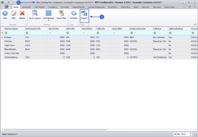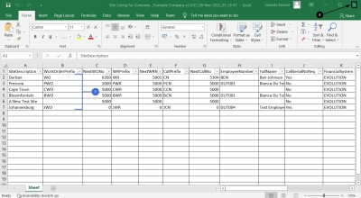 - A list of all the Sites for the company is listed in an Excel Spreadsheet where it can be maintained using the standard Excel features.