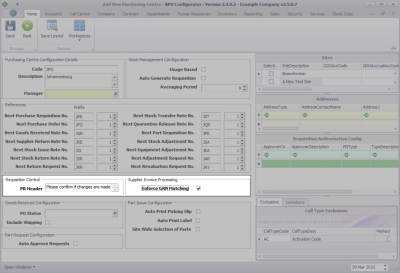 - Enforce GRN Matching: Click on the check box if GRNs must be linked to a supplier invoice when processing.