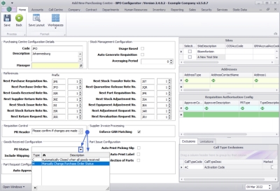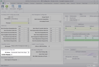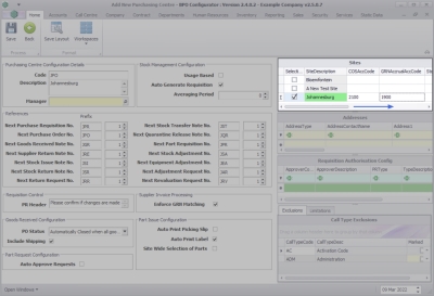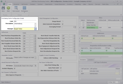 Purchasing Centre Configuration Details