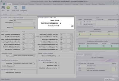 - Auto Generate Requisition: Click to select in this check box if you wish the system to automatically generate the purchase requisition to maintain stock levels.