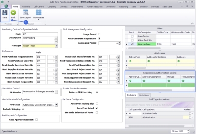Refer to the Company Purchase Centre Requisition Approval manual to complete the Requisition Authorisation Configuration frame.
