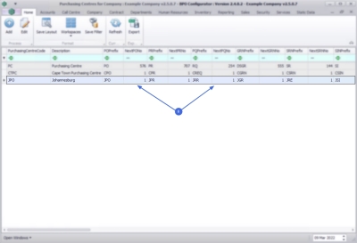 | Ribbon Access: Company > Purchasing Centres |