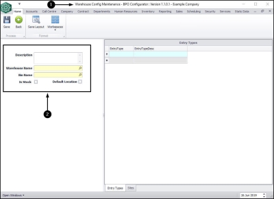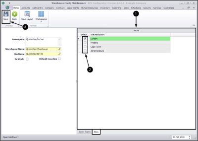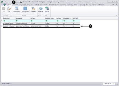 | Ribbon Access: Configurator > Company > System Warehouses |