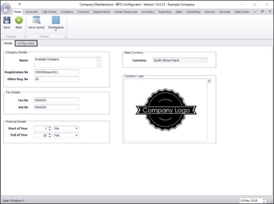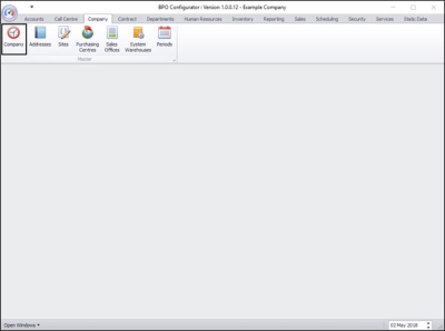 | Ribbon Access: Configurator > Company > Company |
