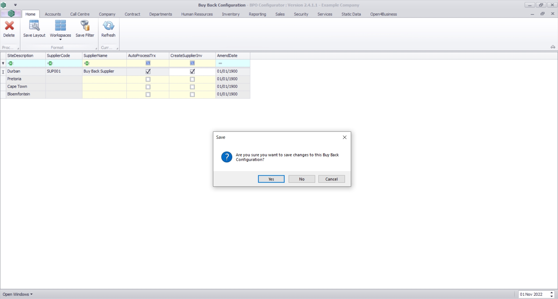 A message box will come up, asking: Are you sure you want to save changes to this Buy Back Configuration?