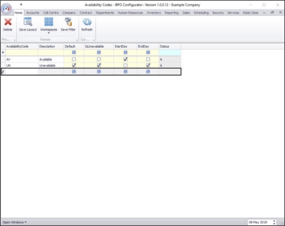 • Note: Only one code should be set as default, and this is normally the Unavailable availability code.