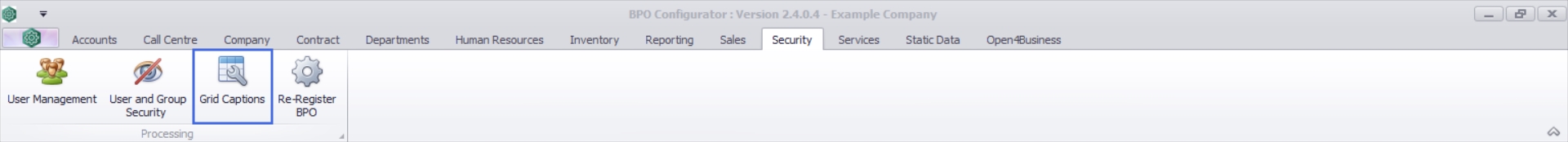 Ribbon Select Security > Grid Captions