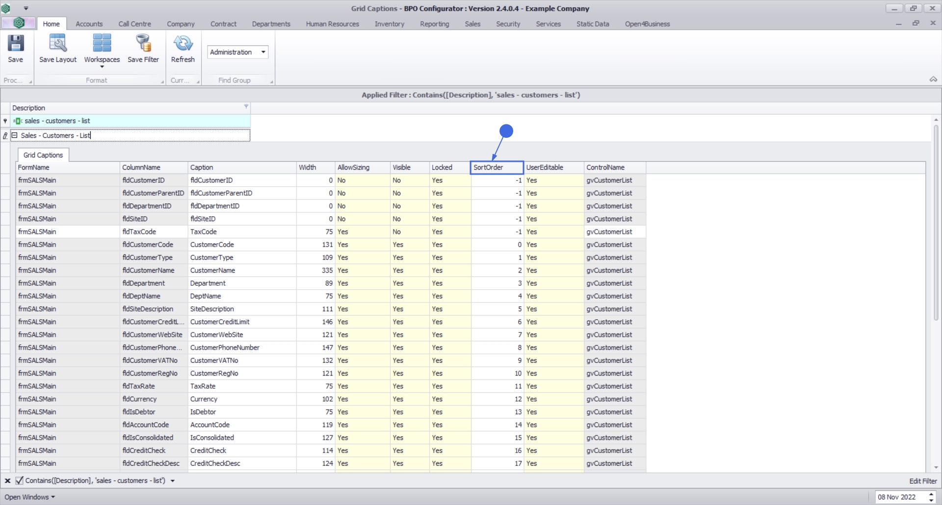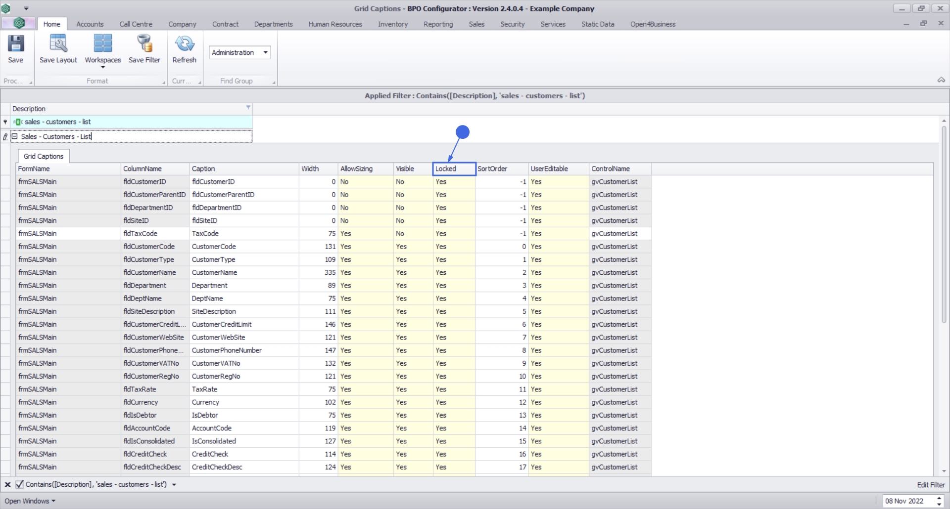 In the grid captions screen you have the ability to customize the data grids within BPO. This customization is done per user group. You will need to log out of BPO (or relevant companion application) and back in again, in order for the changes to take affect.