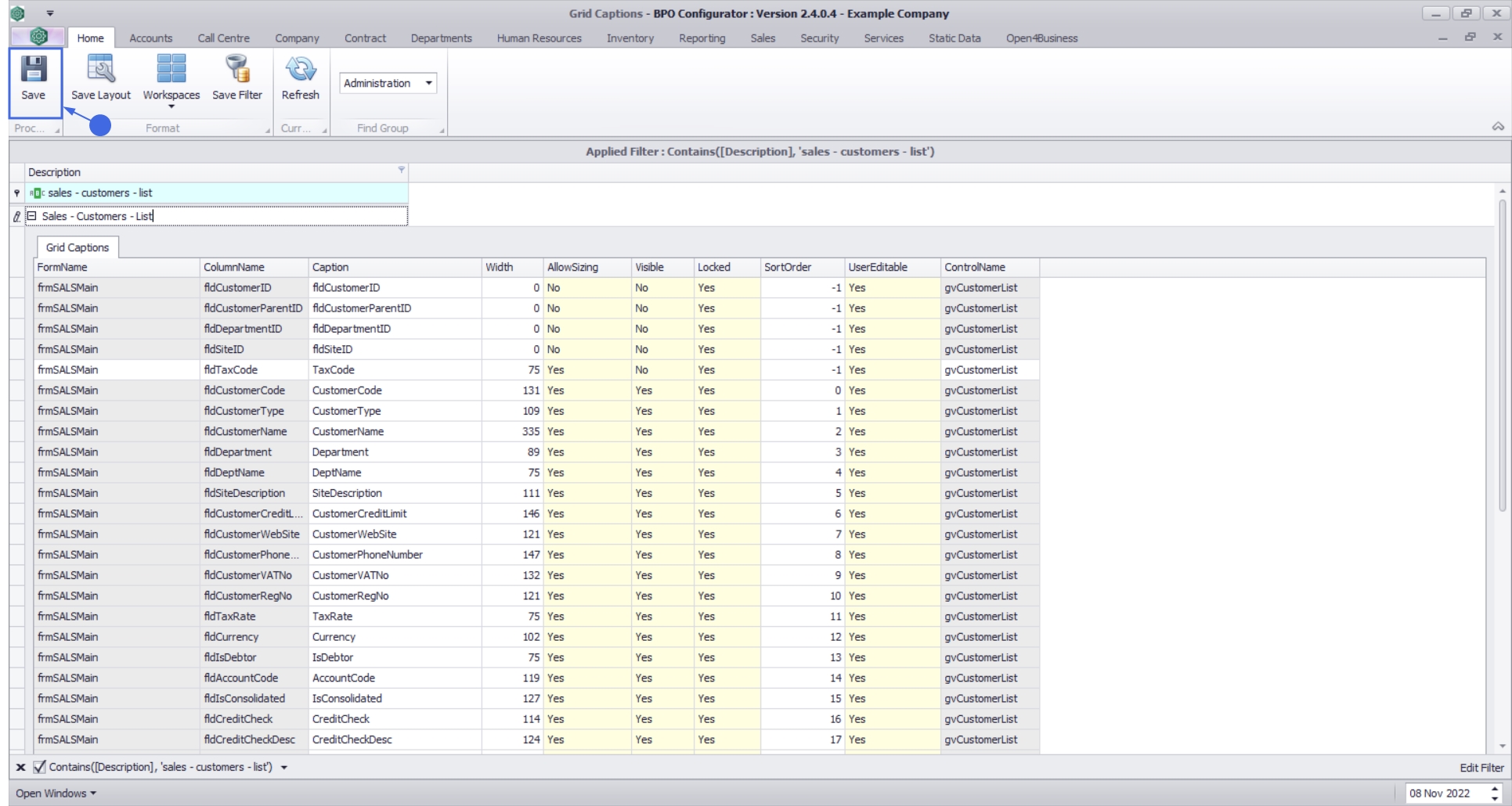 These Grid Captions are retrieved for all users within the specific user group, but each user can perform certain customizations from the relevant screens themselves (such as changing the order or width of columns), which will save to xml files on their local pc (or within their user profile on the server where users remotely connect to an application server), when saving their screen layout.